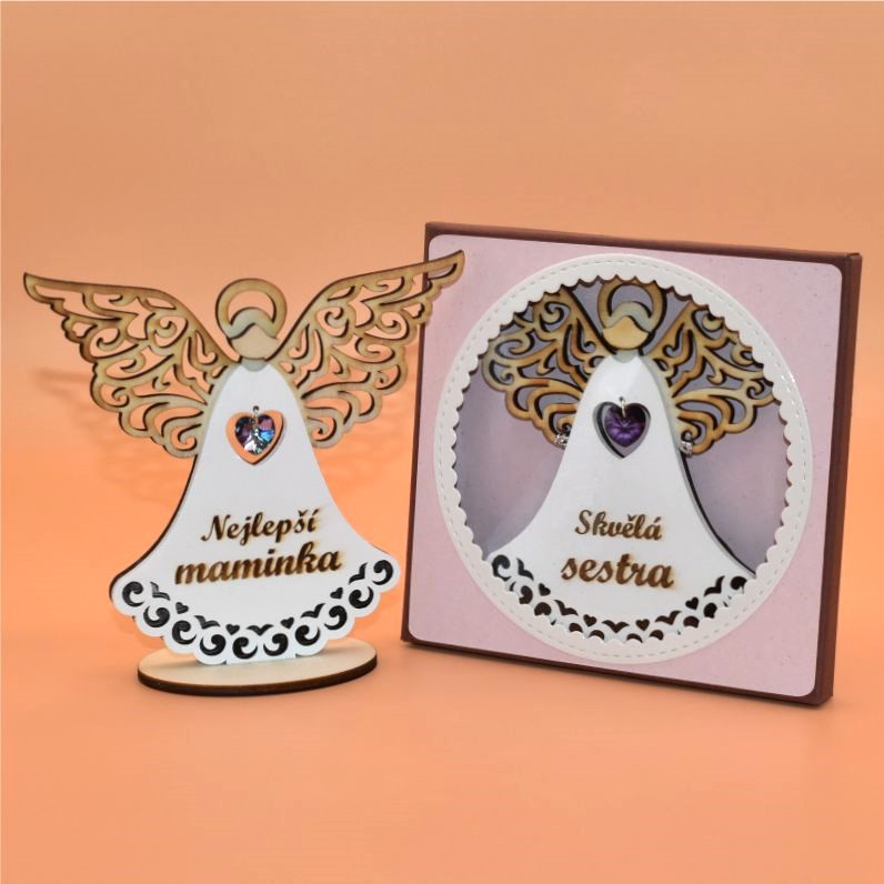 Anděl dřevo s textem k postavení