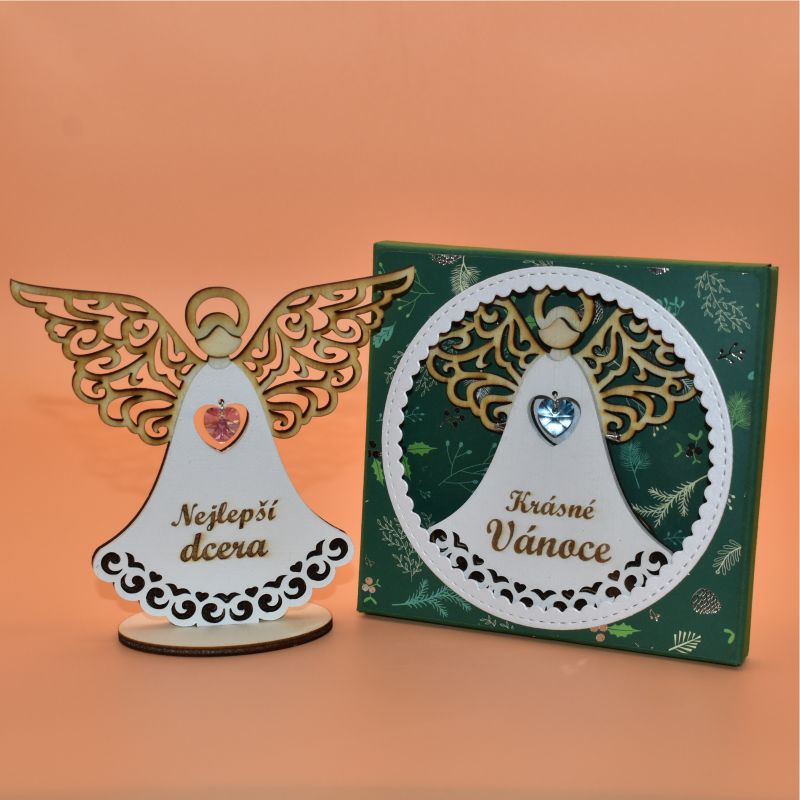Anděl dřevo k postavení Vánoce s textemSkladem 5 ks111 Kč/ ks