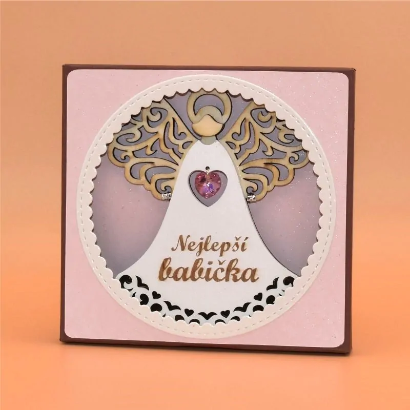 Anděl dřevo s textem k postavení - Nejlepší babička