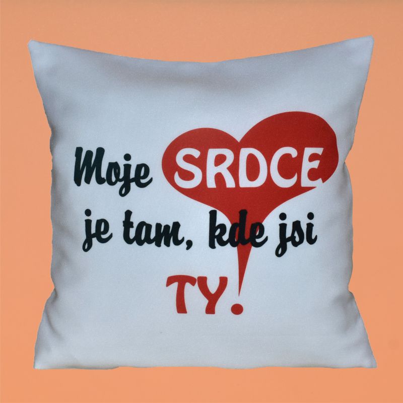 Moje srdce je tam, kde jsi Ty! Polštář je jednostranně tištěný profesionální sublimací. Z druhé strany červený.