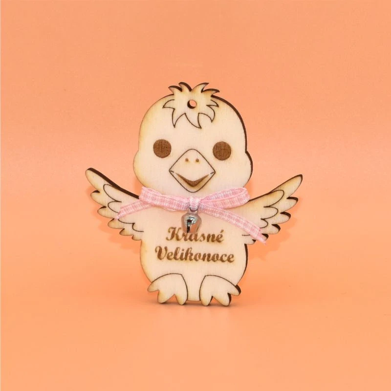 - Dřevěný výřez - kuřátko s růžovou stužkou