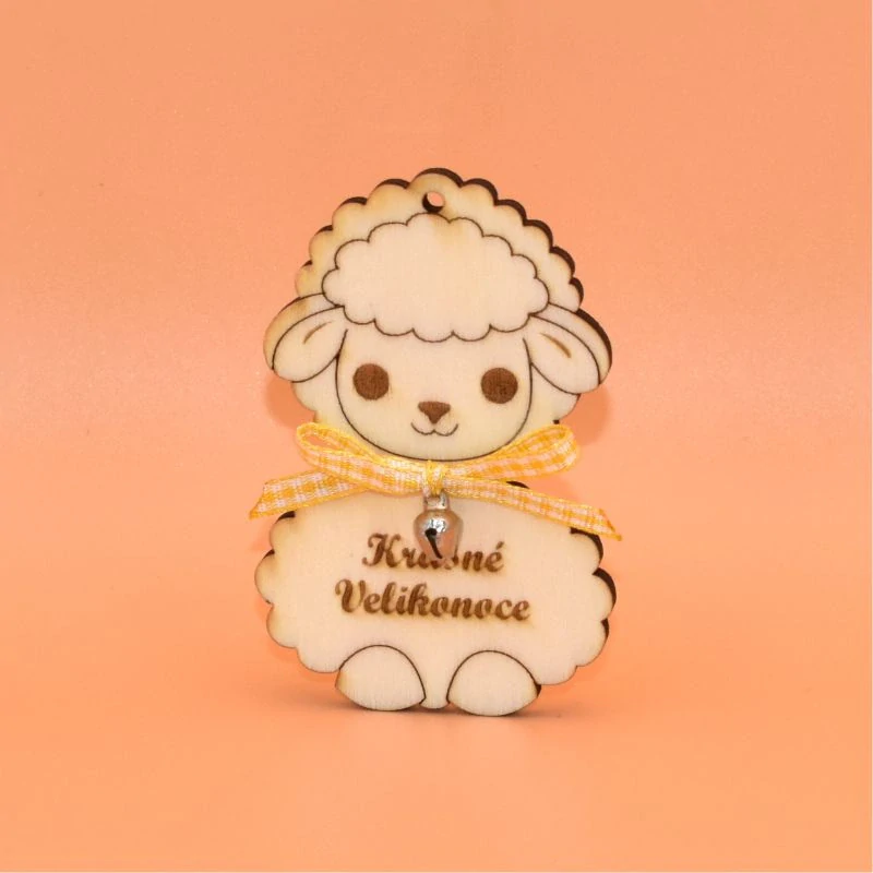 - Dřevěný výřez - ovečka se žlutou stužkou