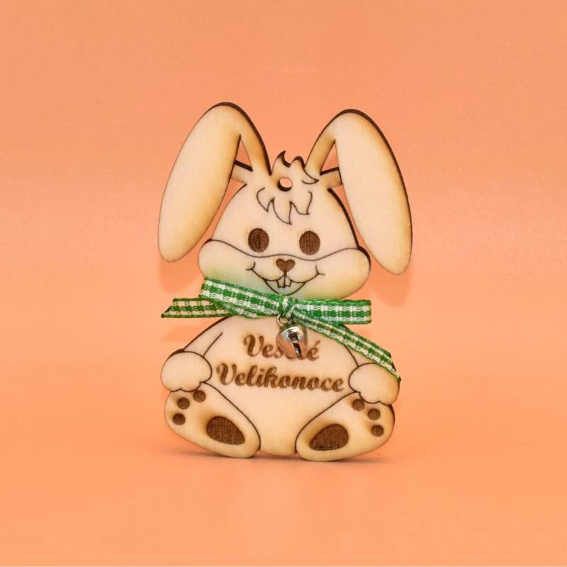 - Dřevěný výřez - zajíček se zelenou stužkou