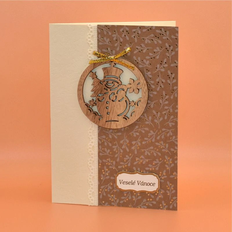 Gratulace Vánoce - Dřevěná ozdoba sněhulák