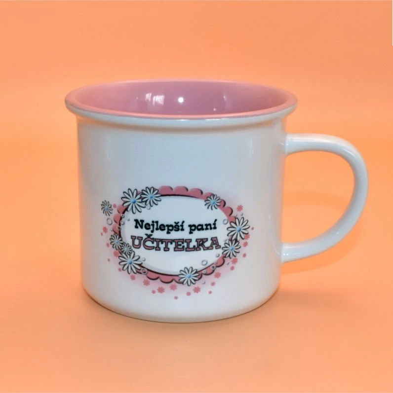 - Keramický hrnek imitace smalt - Nejlepší paní učitelka růžový