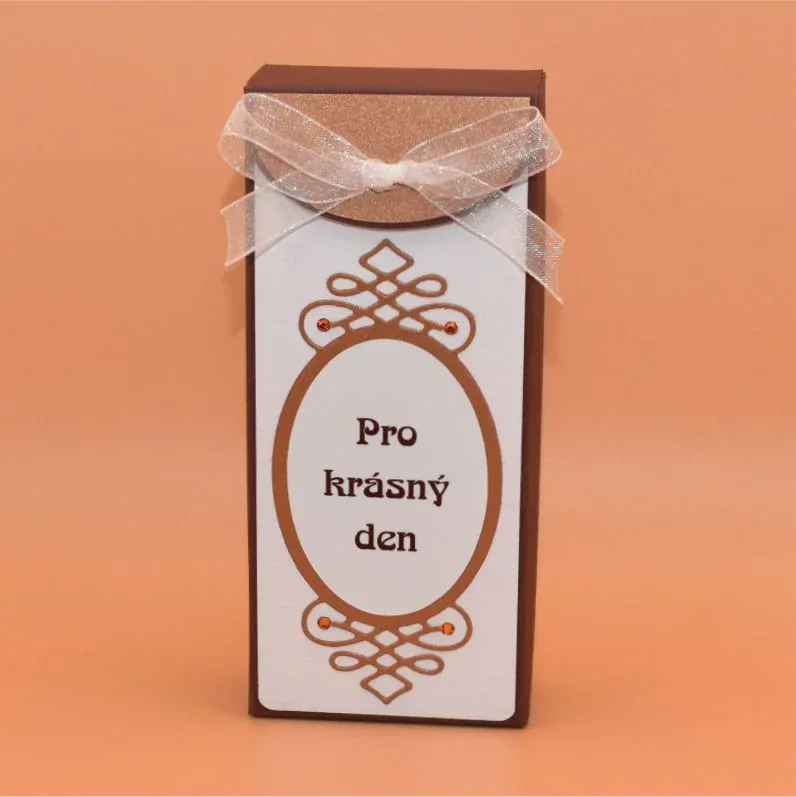 a kávovým krémem v ručně vyrobené dárkové krabičce s textem - Pro krásný den