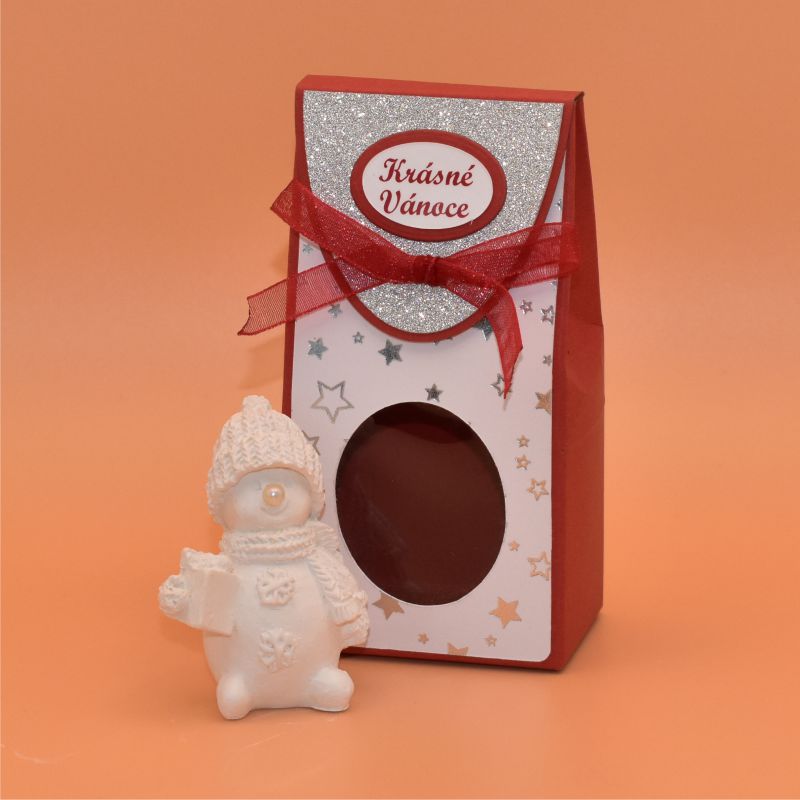 ve tvaru sněhuláka v dárkové krabičce s nápisem - Krásné Vánoce. Výrobek je kompletně ruční výroby.