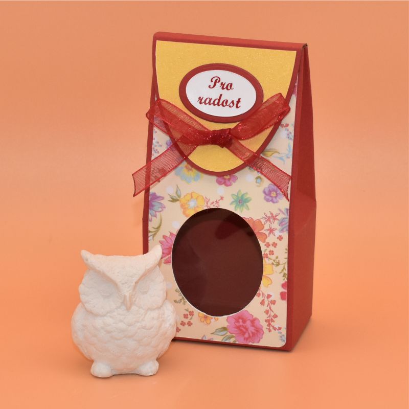 ve tvaru sovy v dárkové krabičce. Výrobek je kompletně ruční výroby.