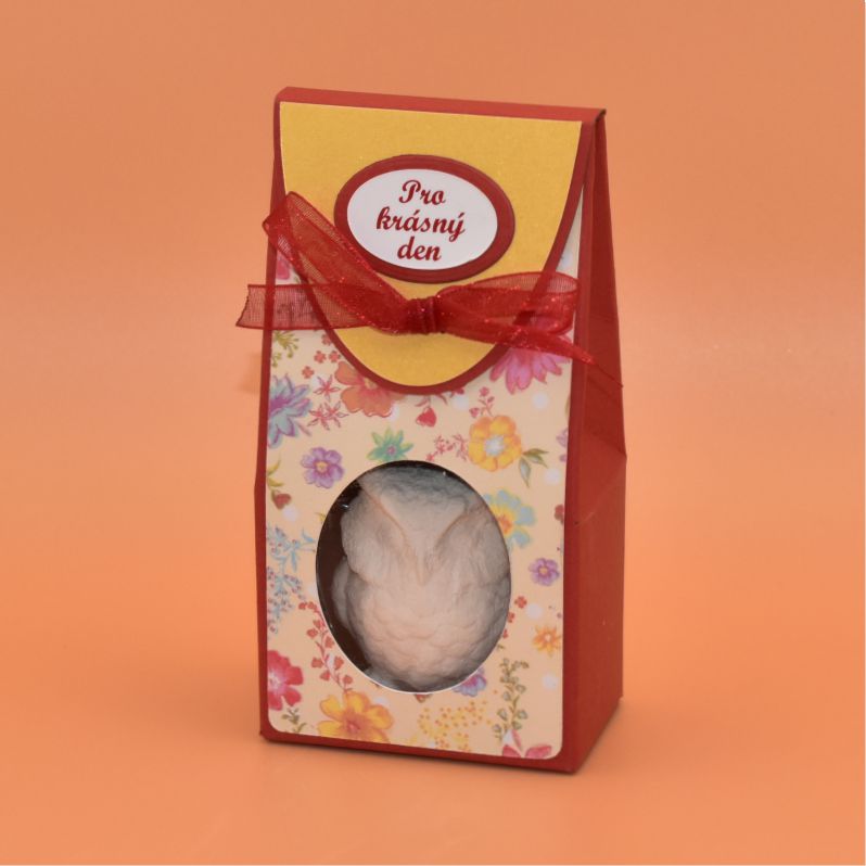 ve tvaru sovy v dárkové krabičce. Výrobek je kompletně ruční výroby.