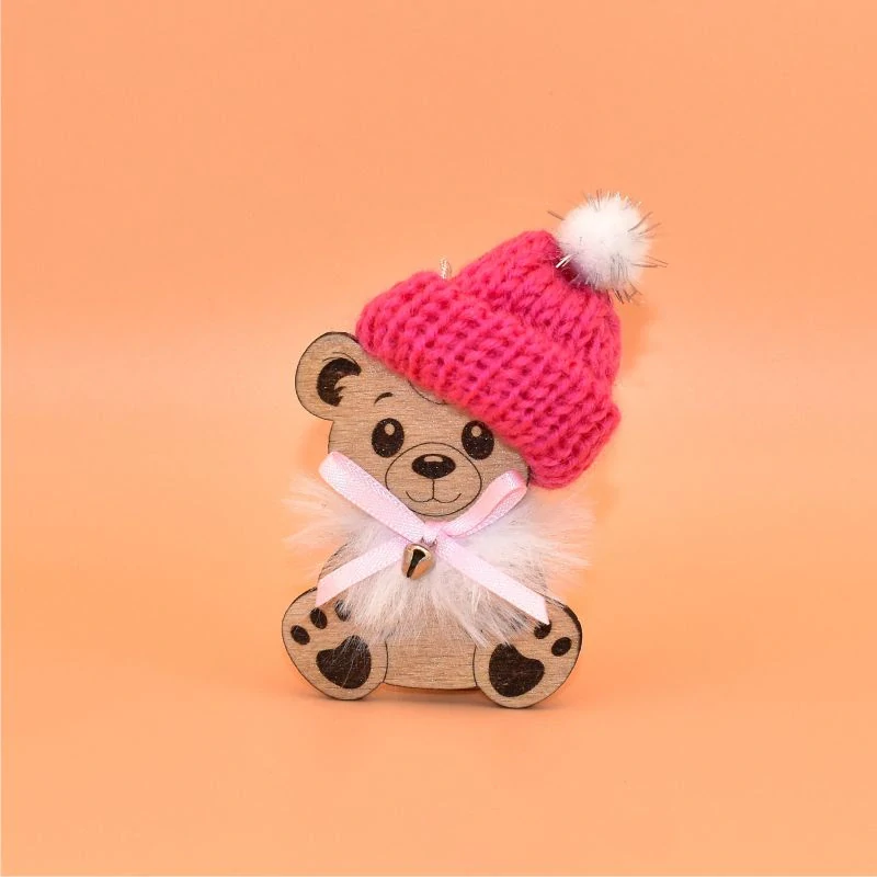 Závěs dřevo s čepičkou - Medvěd růžová