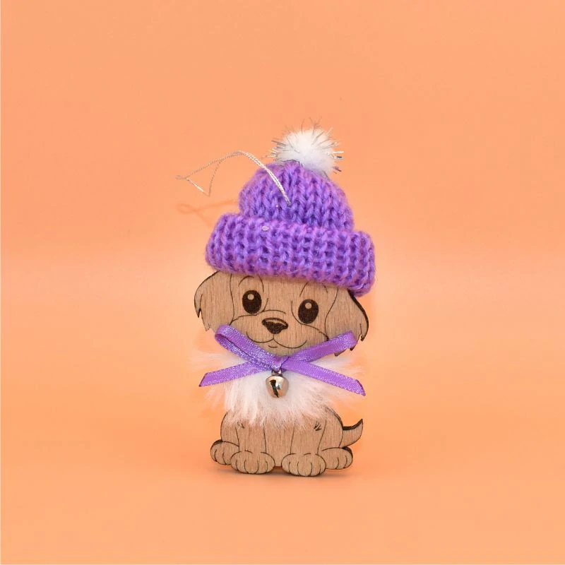 Závěs dřevo s čepičkou - Pes fialová