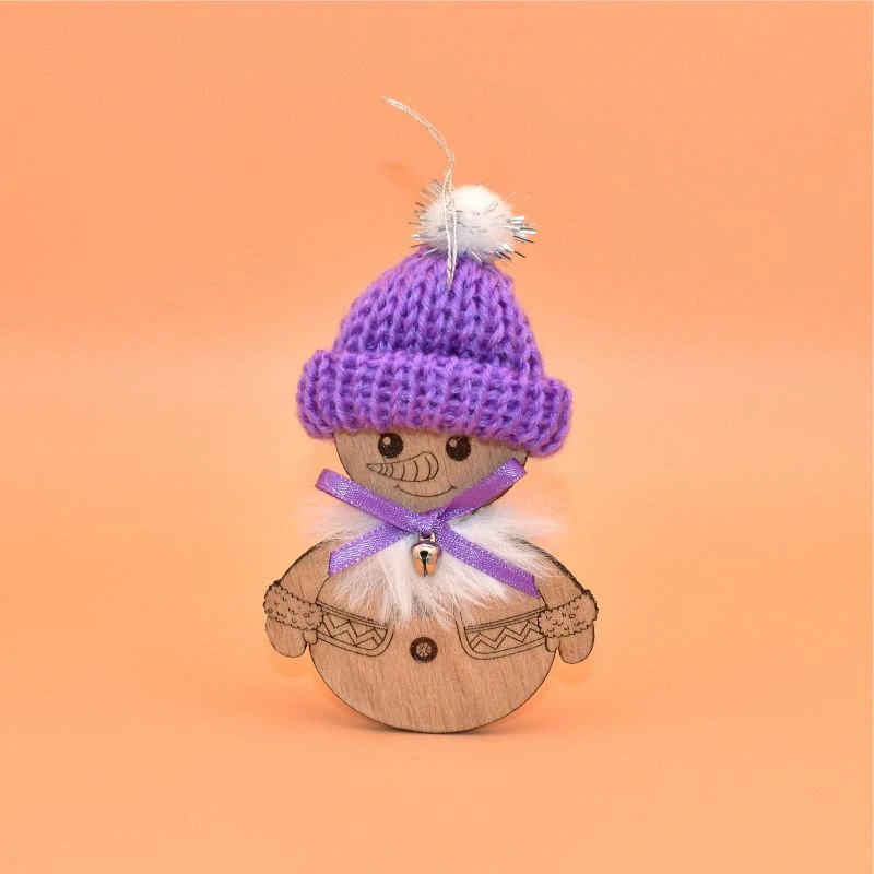 Závěs dřevo s čepičkou - Sněhulák fialová